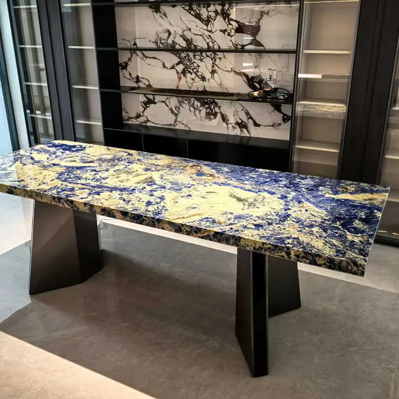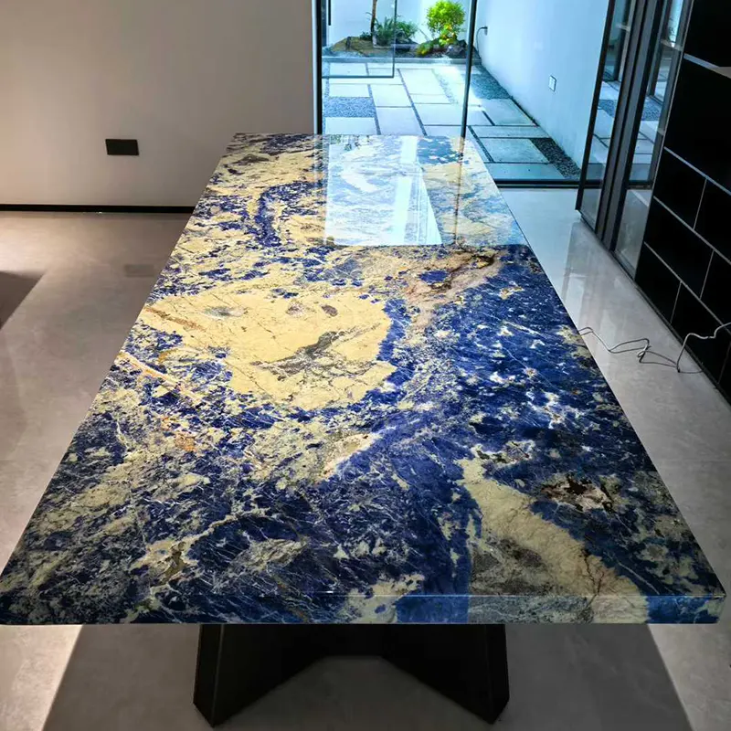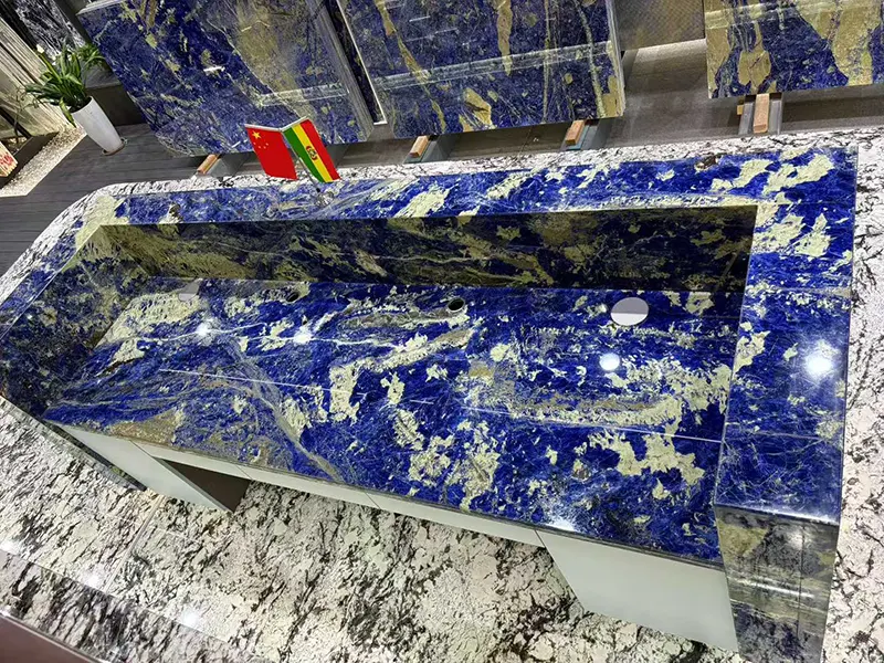 Bolivia Bolivia is een Zuid -Amerikaans land dat blauw graniet of blauwe sodaliet cultiveert. Stel je de enorme, mysterieuze Andes Mountains voor. Deze mooie steen wordt daar gedolven. Het is alsof je een beetje van de Boliviaanse hooglanden in je huis brengt.