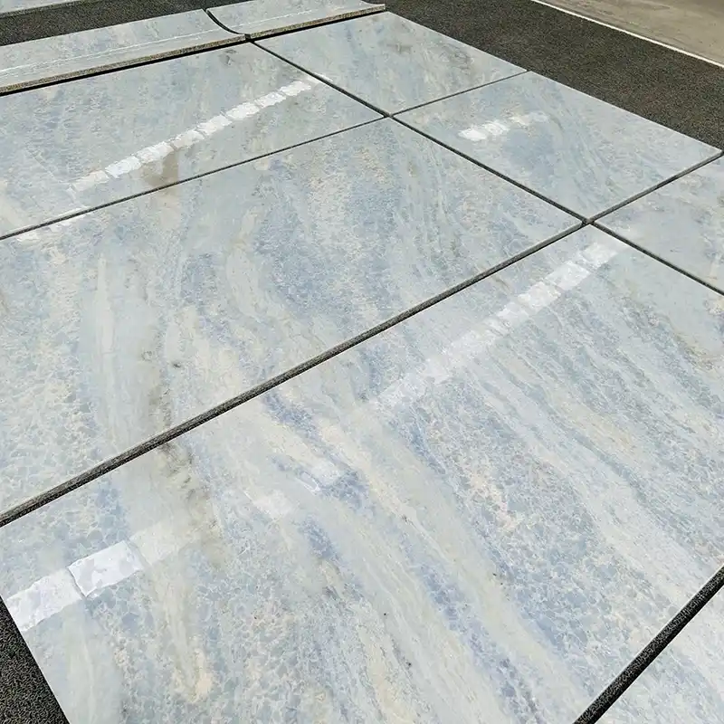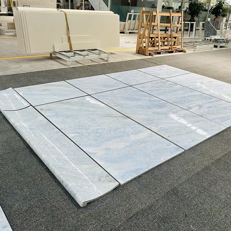 Calcietblauwe extra marmeren wandtegels hebben een heldere, frisblauwe kleur met gebalanceerde, kristalachtige ader, in tegenstelling tot veel donkere of overdreven patroon blauwe knikkers. Het voelt de binnenkant lichter en rustiger terwijl hij er nog steeds stijlvol uitziet.
