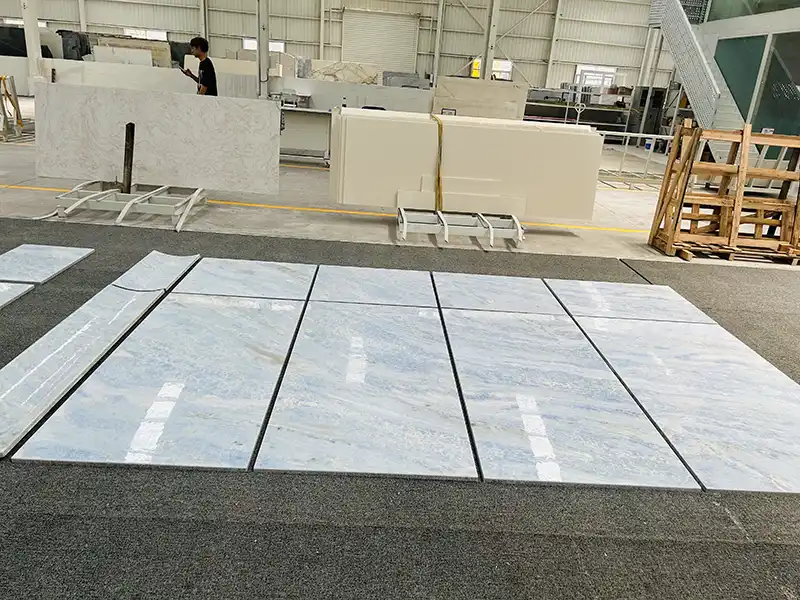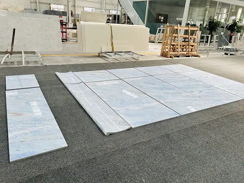 We gebruiken Calcite Azul extra marmer bij Wow Stone al heel lang. We weten hoe we het meeste uit dit materiaal kunnen halen. We doen het allemaal in eigen huis, van het krijgen van het materiaal en het snijden tot het polijsten en verpakken. Dat is verbeterde kwaliteitscontrole, meer aangepaste opties en een meer persoonlijke ervaring.