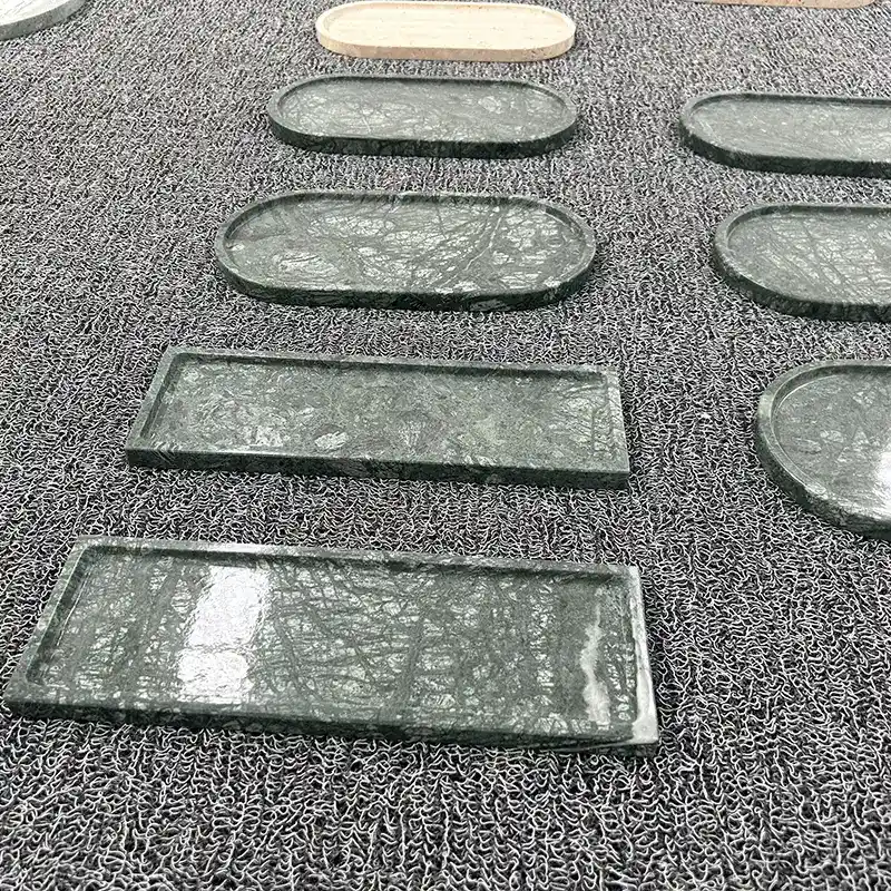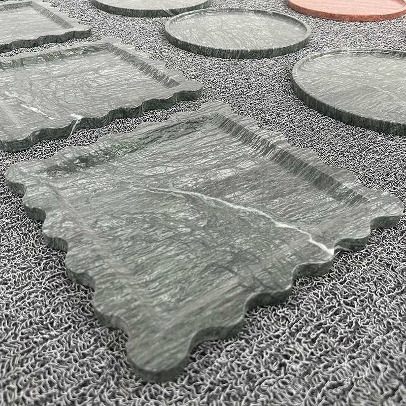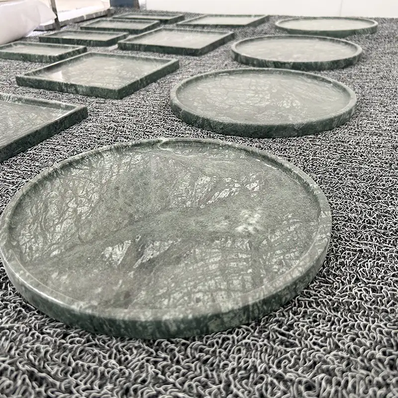Empress Green Marble Trays zien er goed uit in bijna elke stijl van thuis. Ze voegen diepte en contrast toe aan lichte, eenvoudige kamers. In kamers met donkere kleuren of houten accenten passen ze er direct in en geven de kamer een natuurlijk gevoel. Denk er niet te hard over na; De steen doet het werk.