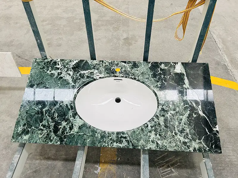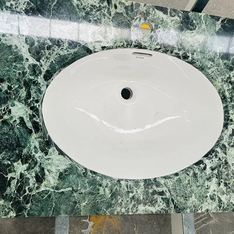 We zijn erg bekend met dit materiaal bij Wow Stone. We hebben meer dan 1.000 vierkante meter keizerin groene marmeren platen op voorraad. We kunnen ze knippen en vormen in bakken, tegels of aangepaste stukken. We doen alles in onze eigen fabriek met onze eigen mensen. Dat betekent dat we ervoor kunnen zorgen dat de kwaliteit in elke fase goed is, van het kiezen van het ruwe blok tot het polijsten tot het inpakken.