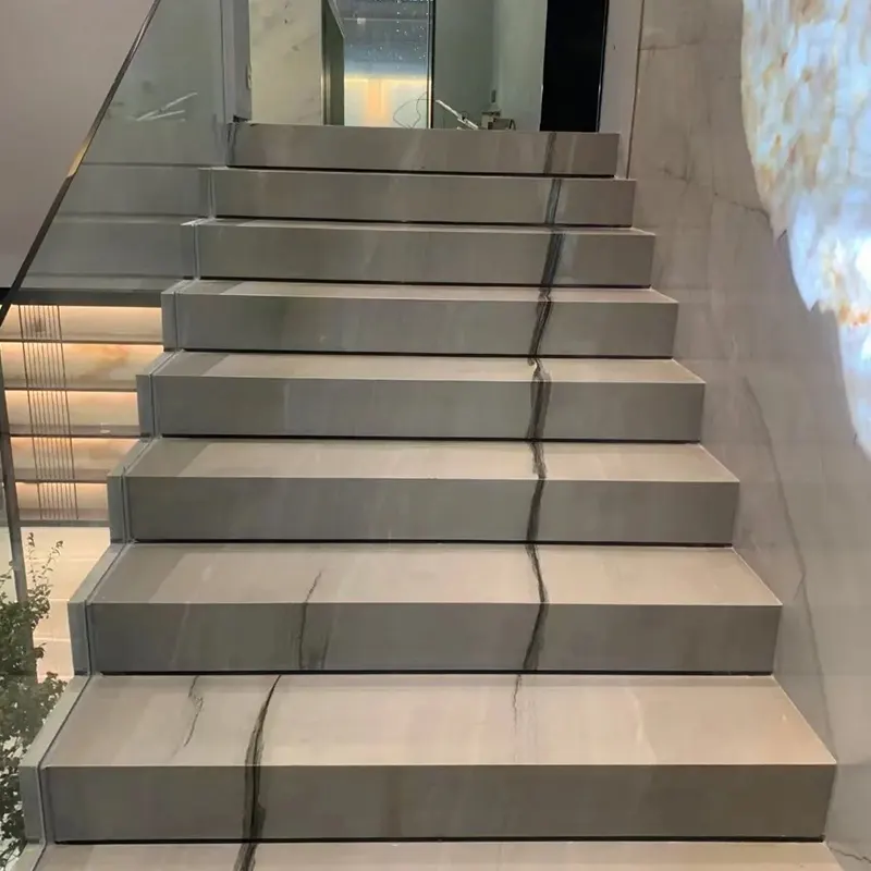 Een van de ondergewaardeerde maar dramatische toepassingen van deze natuurlijke kwartsietsteen is op trappen. Stel je een drijvende trap voor gemaakt van Luce Di Luna met een aangescherpt afwerking - onobiserende verfijning die een blijvende eerste indruk maakt.
