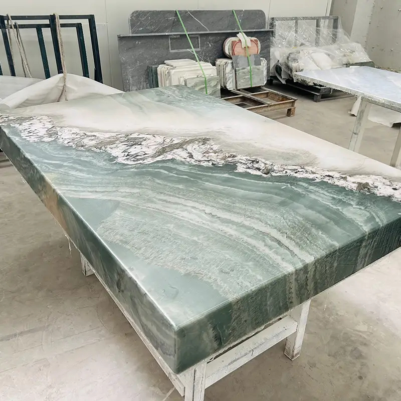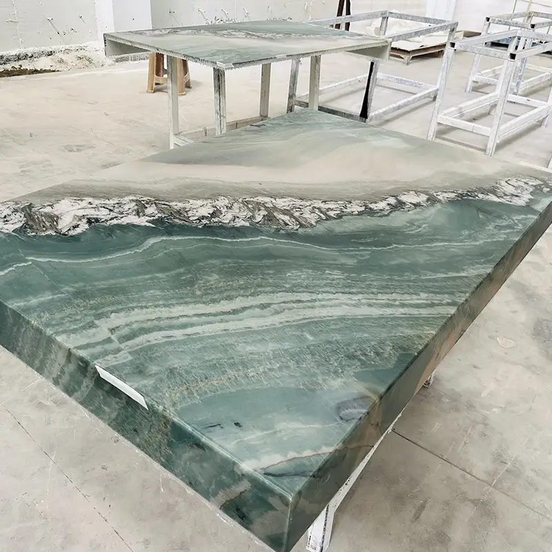 Ja. Het is perfect voor badkamers vanwege zijn hardheid, porositeit en prachtige groenachtige kleuren. Het creëren van uniforme, dichte badkamerfuncties, het wordt veel gebruikt als een kwartsietaanrecht en backsplash.