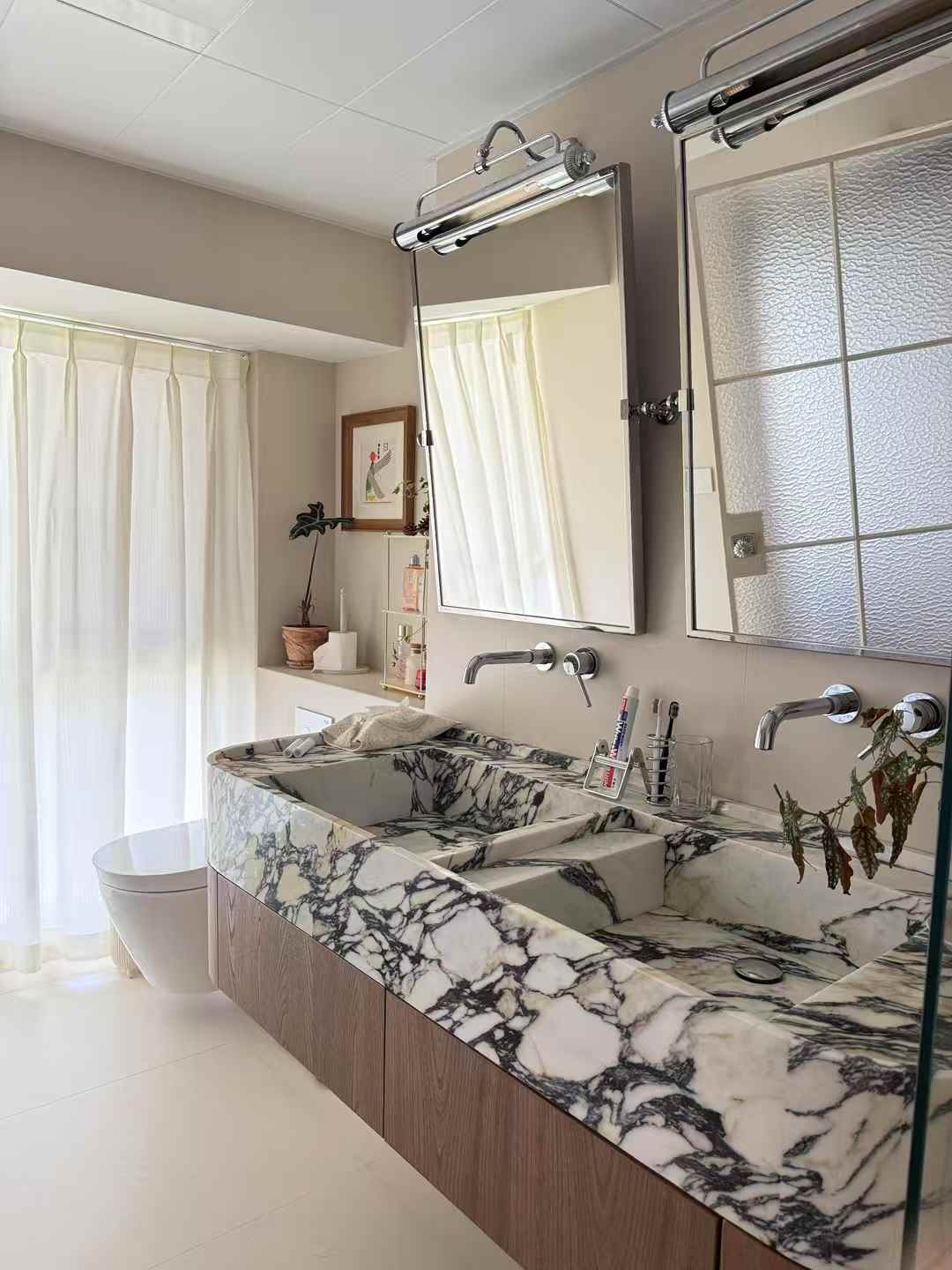 Zeg vaarwel tegen gewone keramische gootstenen. Marmeren ijdelheid tops zorgen voor meer ontwerpkeuzes en een slanke, moderne afwerking.