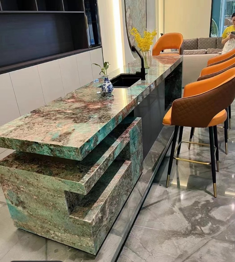 Elke plaat die we verkopen heeft een duidelijk natuurlijk patroon, dus geen twee stukken zijn hetzelfde. Dit maakt elk project onderscheidend. Omdat we onze eigen fabriek en magazijn bezitten, hebben we de controle over alle processen, variërend van ruwe steenkeuze tot nauwkeurige snijden en afwerken. Ervaring hebben met jaren in verwerkingkwartsiet, marmer en graniet, ons personeel zorgt ervoor dat klanten technische uitmuntendheid zullen ontvangen, samen met esthetisch beroep.