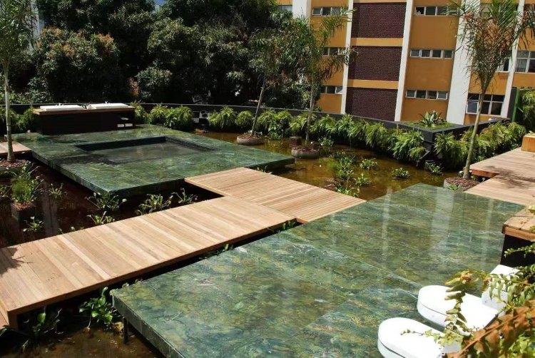 Er is een beetje van de buitenwereld binnengebracht met groen marmer. Het is ideaal voor het produceren van een vredig heiligdom in het huis vanwege zijn dichte patronen en boskleuren. Het is kalmerend en natuurlijk na een lange werkdag.