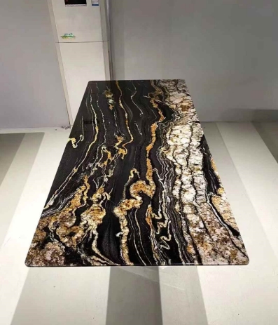 Magma goud granietleent een sophistIcated en mysterieuze kwaliteit naar binnenruimtes. In open woonruimtes kan het het uiterlijk van een luxe stenen bureau, luxe stenen eettafel of zelfs luxe stenen meubels verbeteren. De klassieke en moderne pallet past behoorlijk goed in elkaar.