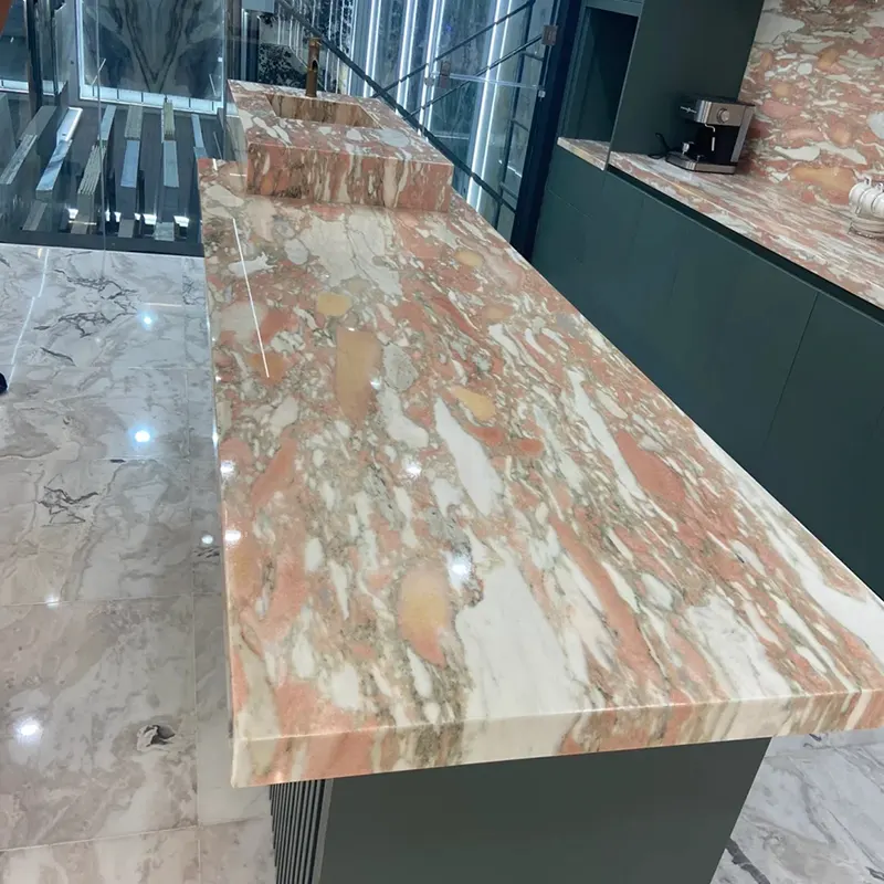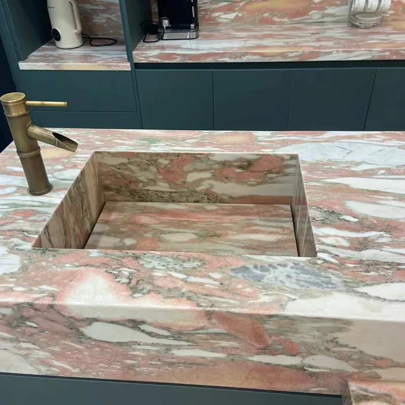 Deze steen is perfect voor een roze marmeren open haard, badkamer of keukeneiland omdat het er geweldig uitziet en goed werkt.