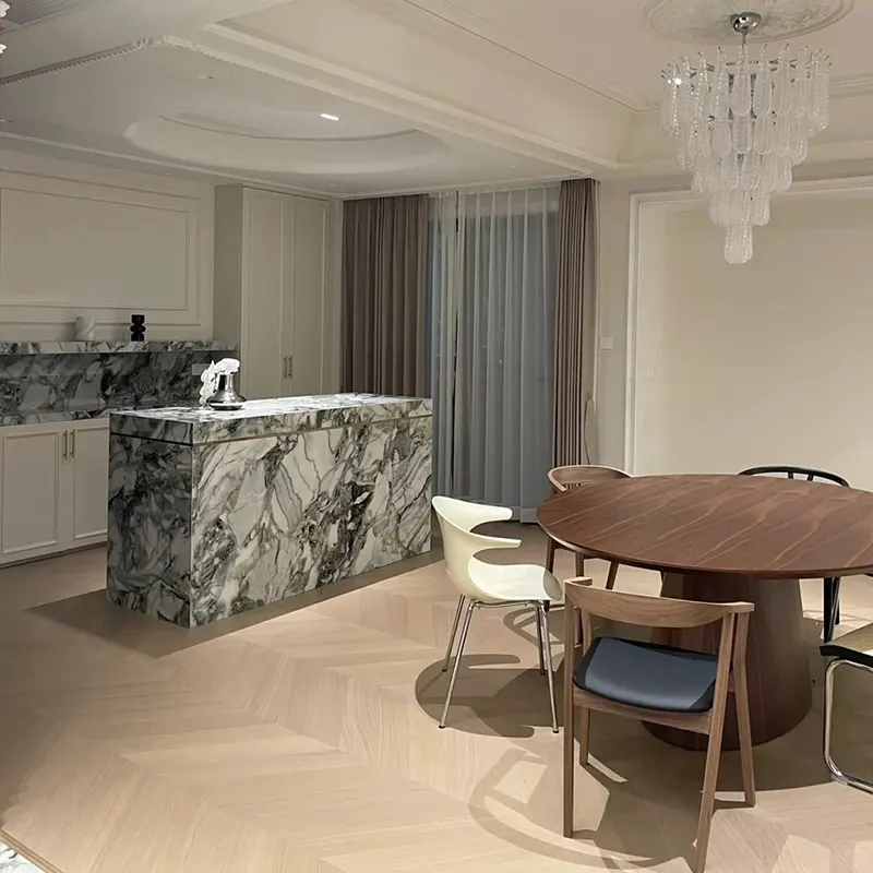 Primavera Marble, ook bekend als Ice Green Marble, is een visueel opvallende natuursteen uit de provincie Yunnan van China. De levendige groene tinten stralen energie en frisheid uit, waardoor het een unieke keuze is om een gewaagd karakter in ruimtes te infuseren. In tegenstelling tot dit zijn de zwart -witte aderpatronen, die een dramatisch effect creëren en een betoverende esthetiek creëren. Productnaam: Primavera Marble Slab Factory: Xiamen Wow Stone Co., Ltd. Origin Land: China MOQ: 1 pc Oppervlak: gepolijst, verzacht Gebruik: veelzijdig voor interieur- en exterieurdecoratie, gewoonlijk gebruikt in wand- en vloertegels, werkbladen, ijdelheid tops, trappen, kolommen, mozaïeken en meer, waardoor het ideaal is voor verschillende bouw- en ontwerpprojecten.