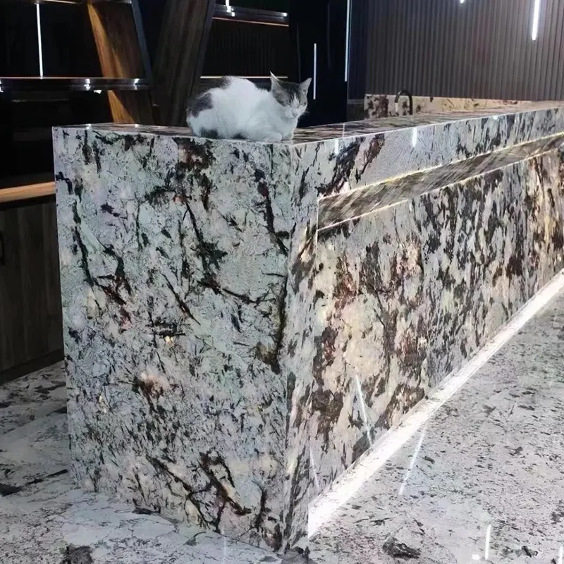 Silver Fox Granite is perfect voor het verlichte toepassingen, omdat het een semi-translucig materiaal is. Gemaakt met zilveren vossen graniet, verlichte granieten kookeilanden, verlichte granieten muren en verlichte granieten aanrechtbladen zijn niet alleen praktisch, maar ook esthetisch interessant. Deze luxe granieten steen gloeit warm in combinatie met LED -achtergrondverlichtingspanelen, waardoor elke kamer diepte en drama krijgen.