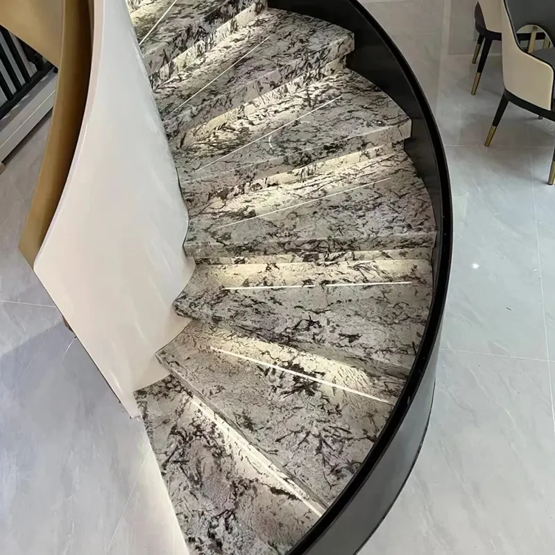 Trappen: de enige uitzonderlijke toepassing van Silver Fox Granite is voor trappen. Vaak aangetroffen in luxe granieten vloerontwerpen, geeft de reflecterende kwaliteit van gepolijste zilveren Fox Granite trappen en loopt een luxe look.