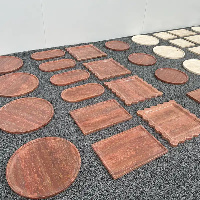 Meer mensen merken rode travertijn op. De dieprode kleur en gouden aderen zorgen ervoor dat het vet en warm aanvoelt, wat geweldig is als je je ruimte wilt verlevendigen. Veel van onze klanten gebruiken een rode travertijnlade om bar -karren, badkamers of als een statement -lade op een eettafel te stylen.