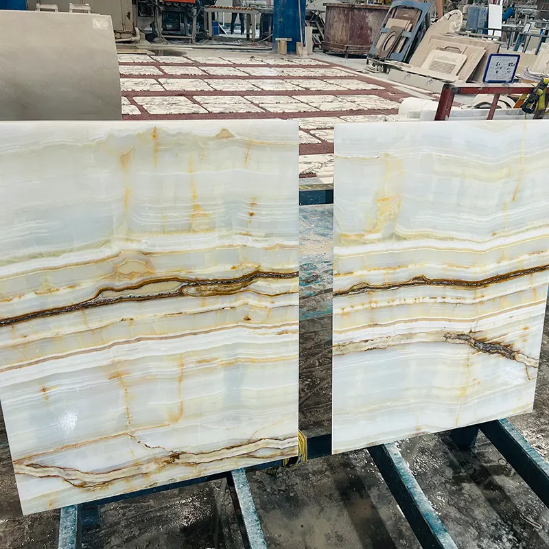 Biedt een groot bereik voor het creëren van witte onyx bankitops en doorschijnende onyx-werkbladen, bij WOW Stone onderhouden we meer dan 1.000 vierkante meter witte onyx-platen en blokken. Klanten kunnen vol vertrouwen het ideale stuk kiezen door de platenkwaliteit te bekijken via video of afbeeldingen met een hoge resolutie.