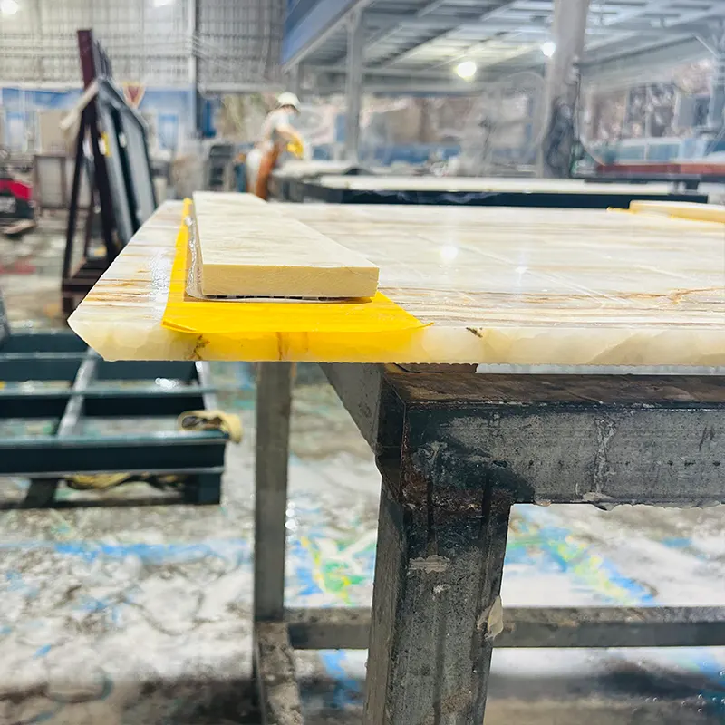 Dimensies en randontwerpen zijn twee aspecten waar verschillende markten verschillende smaken vertonen. Grotere tellers zoals 3000 mm x 1500 mm hebben de voorkeur in Europa en Noord -Amerika, omdat ze brede oppervlakken bieden die de hele schoonheid van de steen benadrukken. Voor kleinere woonruimten zijn Aziatische Onyx -keukenbladen het beste in kleinere maten zoals 2400 mm x 1200 mm.